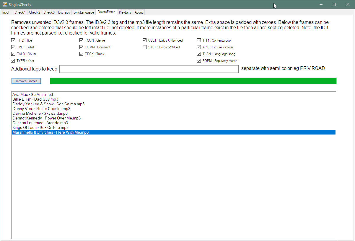 - One thing I could not find elsewhere on the internet was a utility to list all the ID3 frames present in an mp3 file. So I added this to my utility.
